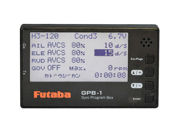 Futaba製のヘリ用3軸ジャイロ「CGY760R」や「CGY755」に有線接続することで、さまざまなパラメータ設定が簡単におこなえるようになるジャイロ・プログラムBOXです。