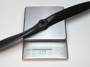 形状は同サイズのAPCグラスプロペラと同じで、軽量化(実測119g)されています。