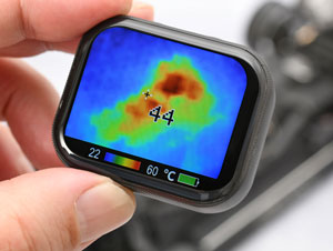 温度を色で可視化し、熱の分布や発熱ポイントを直感的に把握可能。目に見えない温度変化を分かりやすく表示します。